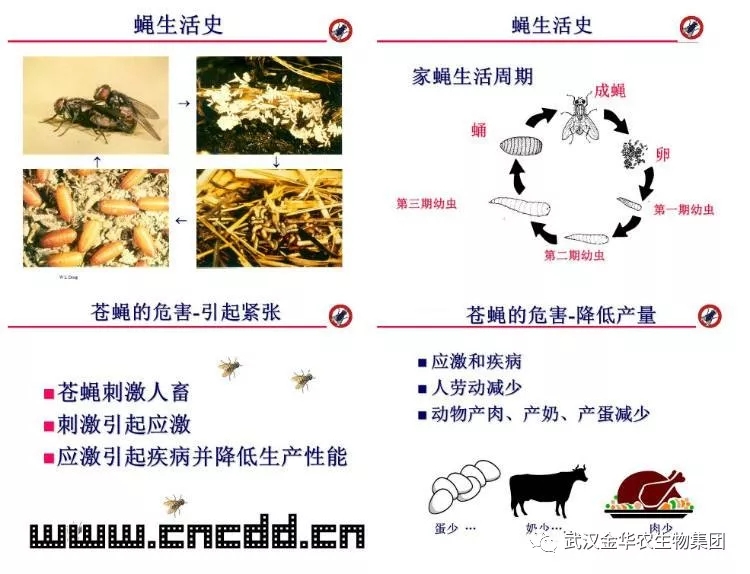 蒼蠅能否完成它的生活周期很大程度上依賴于氣候條件。當(dāng)溫度低于15℃或者高于45℃,濕度低于60%或者高于80%時,能很好地抑制蒼蠅的生長。而在整個蒼蠅群體中,80%處于發(fā)育期,只有20%為成蠅。因此在春季施藥“蠅蛆凈”進行有效防制,可將蒼蠅控制于幼蟲期,成功殺滅掉,從而減少養(yǎng)殖場的蚊蠅數(shù)量 。