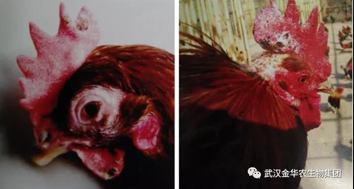 痘疹多發(fā)于病雞的雞冠、肉髯、喙角、眼瞼及跖部、趾部起初生成表面凹凸不平的灰白色小結(jié)節(jié),隨后很快融合連片,形成突出于表面的粗糙、呈暗褐色痂塊,痂皮逐漸脫落,留下疤痕。
