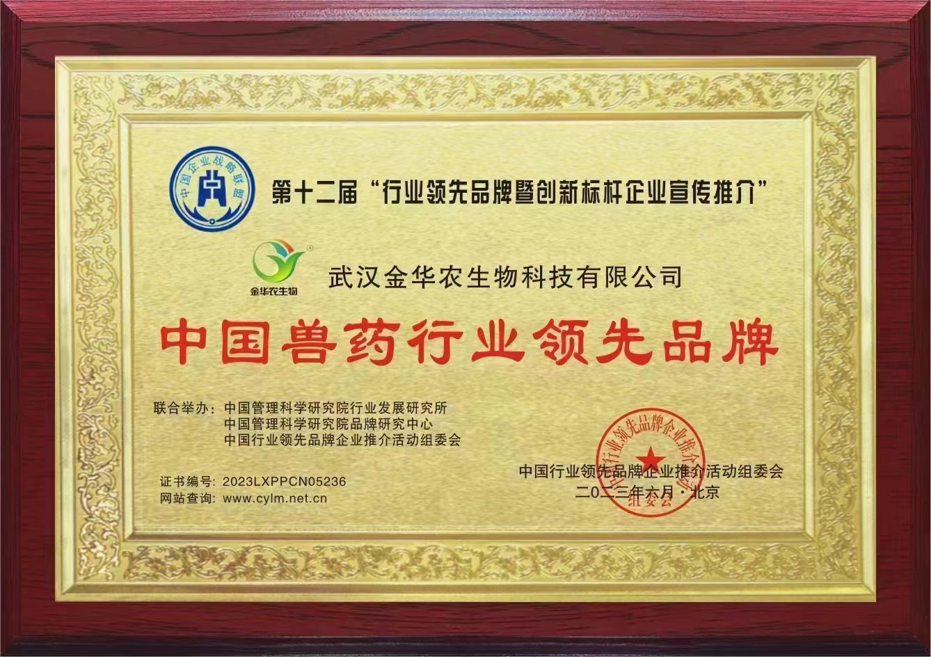卯兔年未過半,武漢金華農(nóng)已迎來諸多利好消息。公司業(yè)績突飛猛進,銷量翻番;公司獲得省農(nóng)業(yè)農(nóng)村廳第一批新版GMP獸藥文號、飼料添加劑45個新品種批號;公司憑借專業(yè)技術、創(chuàng)新發(fā)展、高效服務,被國家信用平臺、品牌強國計劃評選為“獸藥飼料添加劑行業(yè)典范企業(yè)”。近日,公司又在中國科學研究院組織的全國自主品牌研發(fā)、科研創(chuàng)新產(chǎn)品、質(zhì)量品控管理、高校產(chǎn)學研基地建設的評選活動中,經(jīng)嚴格篩選,層層選拔,考核評比,監(jiān)督審查,被中國科學研究院組委會授予“中國獸藥行業(yè)領先品牌”榮譽稱號。