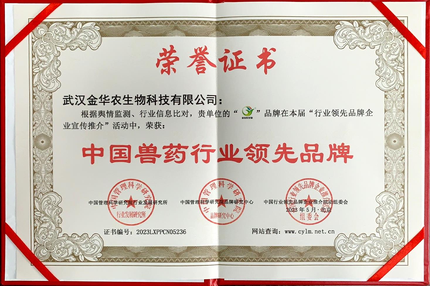 我司獲“中國獸藥行業(yè)領先品牌”榮譽稱號