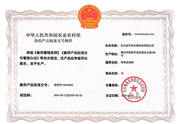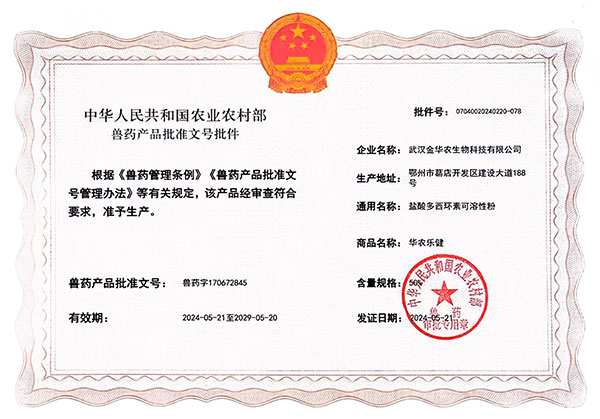 農(nóng)業(yè)農(nóng)村部頒發(fā)我司4個(gè)新獸藥批文批號(hào)