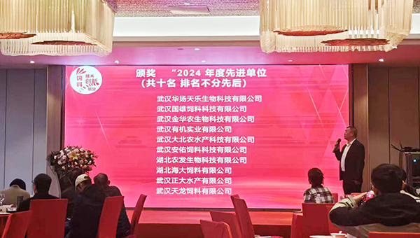 3 月 28 日,武漢市飼料協(xié)會(huì)年會(huì)暨第四屆第二次會(huì)員大會(huì)在武漢市歐亞國(guó)際會(huì)議酒店隆重舉行。武漢金華農(nóng)生物科技有限公司憑借在科技創(chuàng)新、產(chǎn)業(yè)服務(wù)及行業(yè)引領(lǐng)等方面的突出表現(xiàn),被授予2024 年度畜牧行業(yè)“先進(jìn)單位” 榮譽(yù)稱(chēng)號(hào)。湖北省農(nóng)業(yè)農(nóng)村廳畜牧獸醫(yī)處李處長(zhǎng)、武漢市農(nóng)業(yè)農(nóng)村局張局長(zhǎng)、武漢市農(nóng)業(yè)農(nóng)村局余處長(zhǎng)出席活動(dòng)并為獲獎(jiǎng)單位頒獎(jiǎng)。武漢金華農(nóng)生物集團(tuán)富勝董事長(zhǎng)出席活動(dòng)并致辭。