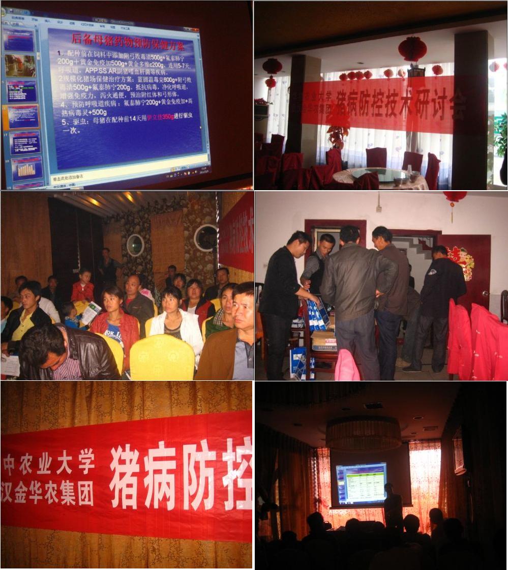 會議現(xiàn)場,來自湘南地區(qū)的60多家養(yǎng)殖場負(fù)責(zé)人及各地經(jīng)銷商、技術(shù)員代表共200多人,就養(yǎng)殖所關(guān)心的疾病防控、標(biāo)準(zhǔn)化豬場建設(shè)、組合用藥配比等問題,與華中農(nóng)業(yè)大學(xué)豬病專家進行了面對面交流,武漢金華農(nóng)生物推出的“氟泰肺寧”特效組合用藥指導(dǎo)也得到養(yǎng)殖戶和各地經(jīng)銷商的一致認(rèn)可。